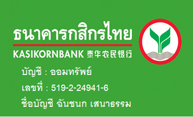 >>ทำการโอนเงินมาบัญชีที่ระบุไว้ **มัดจำสินค้า 30 % ของราคาสินค้า >>เมื่อโอนแล้ว ให้โทรแจ้งหรือส่งรูปหลักฐานการโอนเงินมาที่ Line: new_nicky พร้อมกับแจ้งที่อยู่จัดส่ง